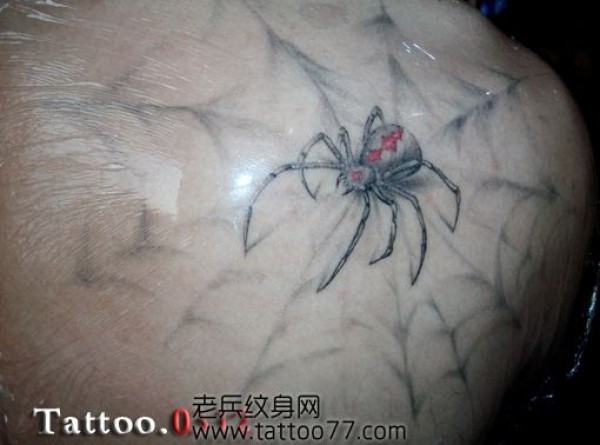 超酷的肩部蜘蛛蜘蛛网纹身图案_肩部纹身图案大全_纹身图吧