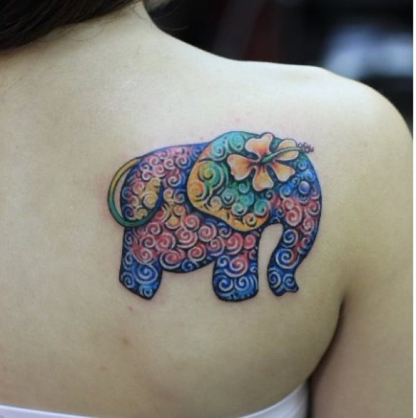 女人纹身图案肩部彩色大象纹身图案_肩部纹身图案大全_纹身图吧