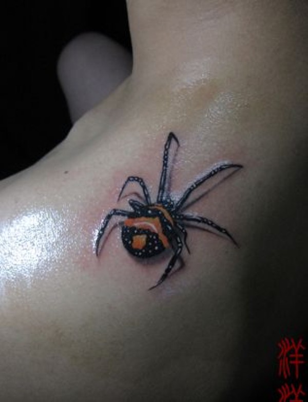 肩部好看的彩色蜘蛛纹身图案_肩部纹身图案大全_纹身图吧