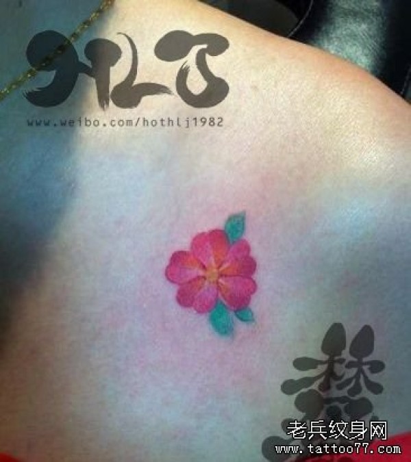 女孩子肩膀处小巧的樱花纹身图案_肩部纹身图案大全_纹身图吧