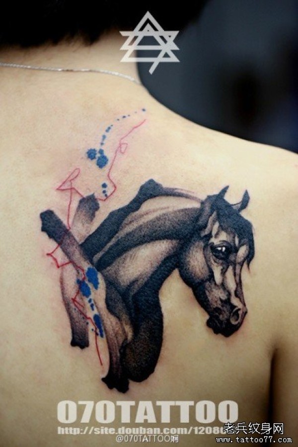 肩背潮流的一款概念风格的马纹身图案_肩部纹身图案大全_纹身图吧