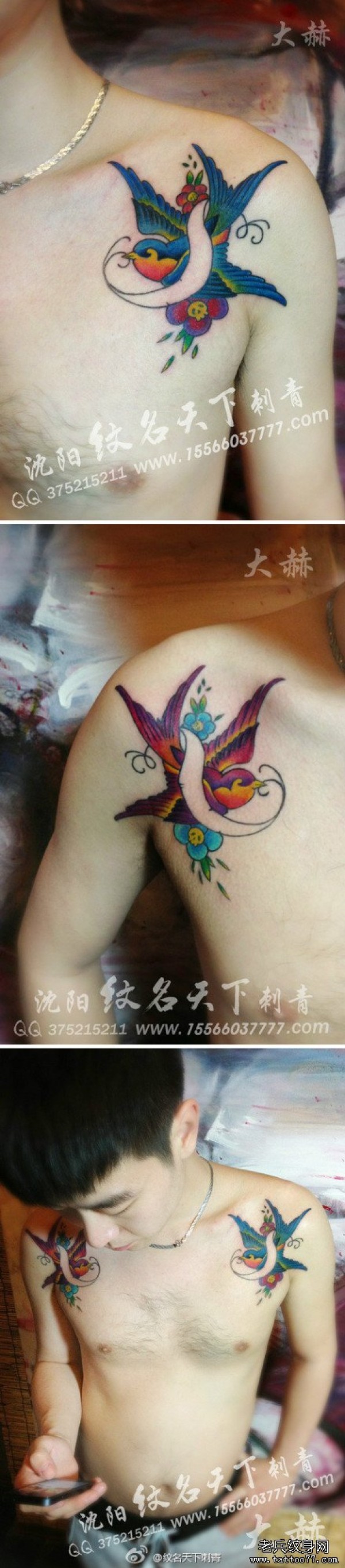 男生肩膀处漂亮时尚的小燕子纹身图案_肩部纹身图案大全_纹身图吧