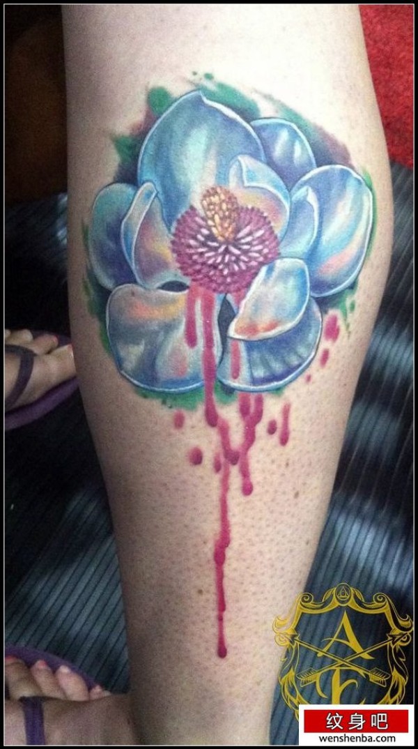 彩色脚部的禄色花心纹身_脚部纹身图案大全_纹身图吧