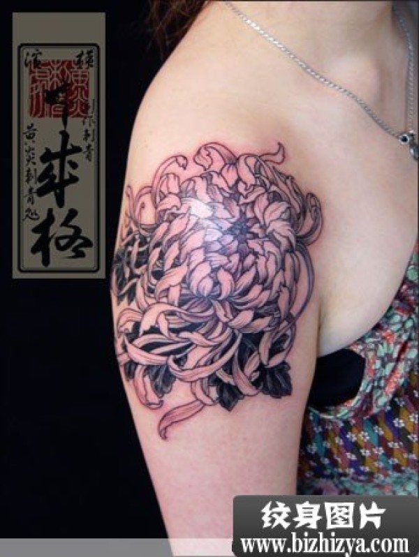 肩部菊花纹身作品_肩部纹身图案大全_纹身图吧