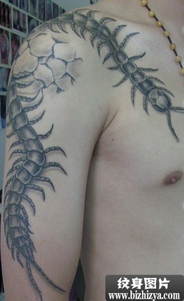 男性右肩蜈蚣的刺青图案_肩部纹身图案大全_纹身图吧