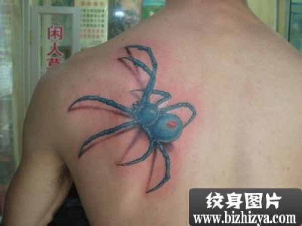左后肩的绿色逼真大蜘蛛图案_肩部纹身图案大全_纹身图吧