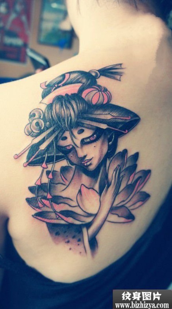 莲花艺妓美女肩部时尚纹身图案图片_肩部纹身图案大全_纹身图吧