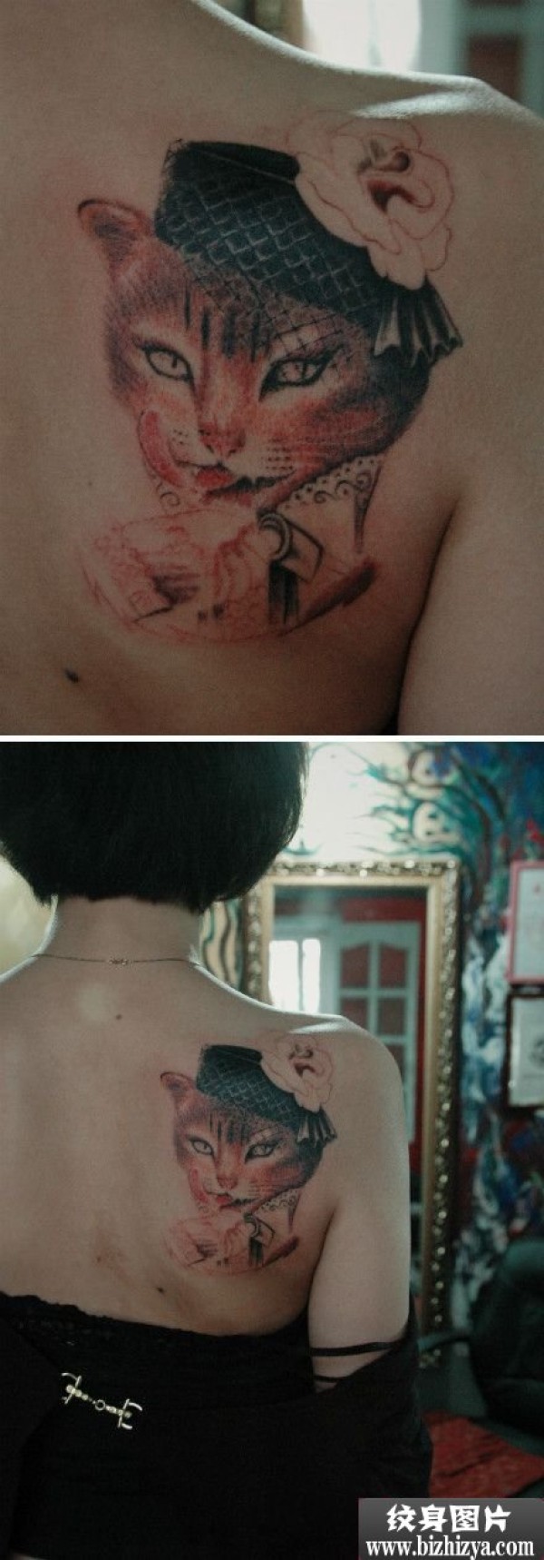 性感猫女神创意肩部纹身图案图片_肩部纹身图案大全_纹身图吧