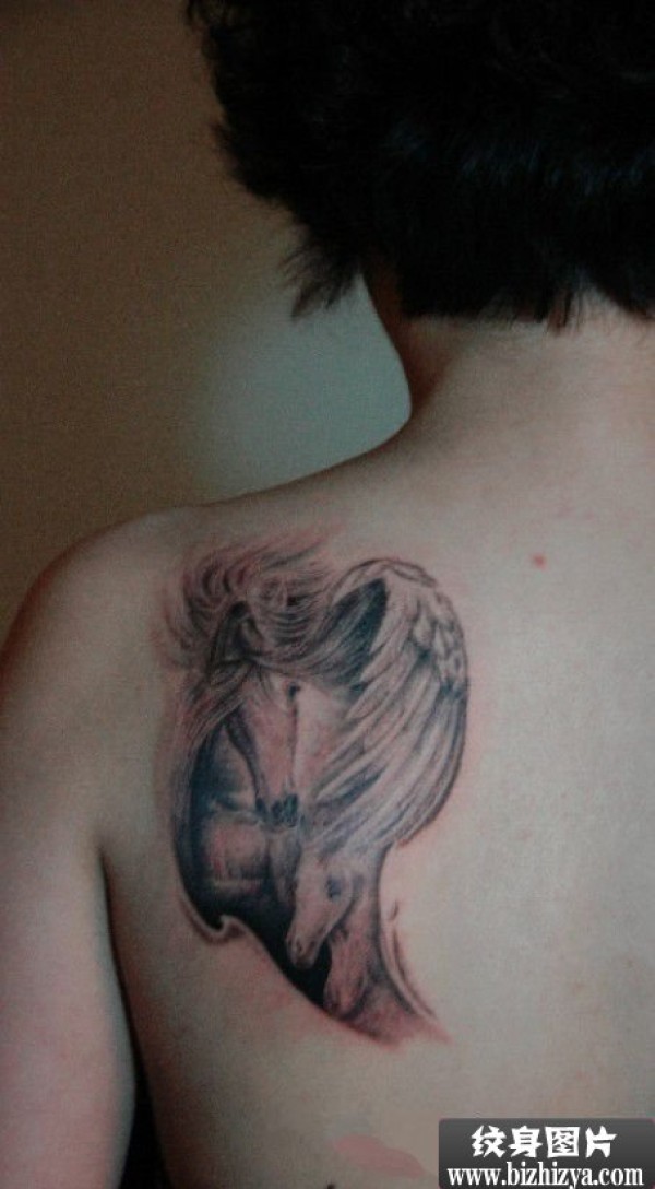 水墨风马儿唯美肩部纹身图案图片_肩部纹身图案大全_纹身图吧