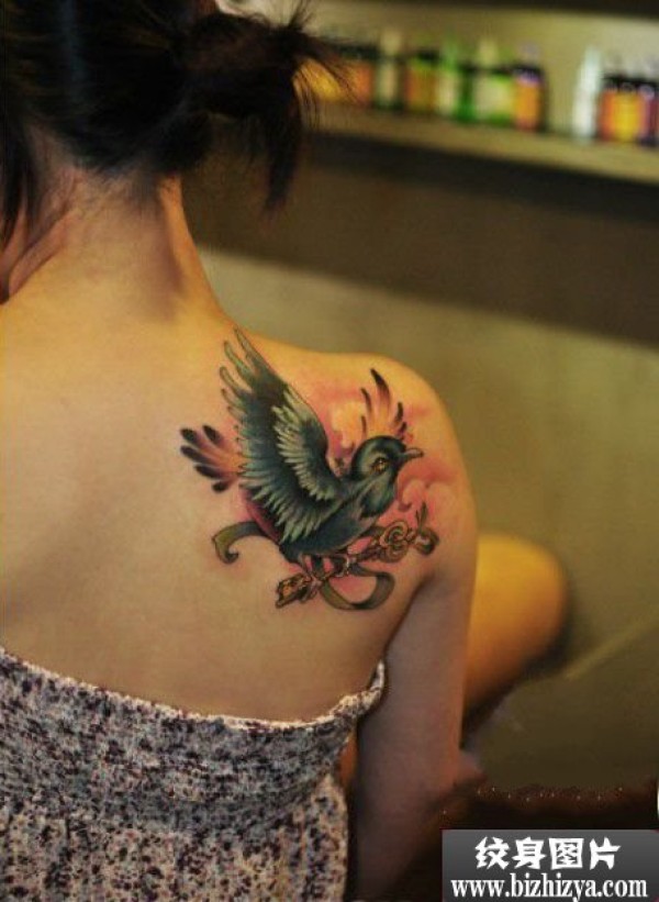 飞翔的燕子唯美肩部纹身图案图片_肩部纹身图案大全_纹身图吧