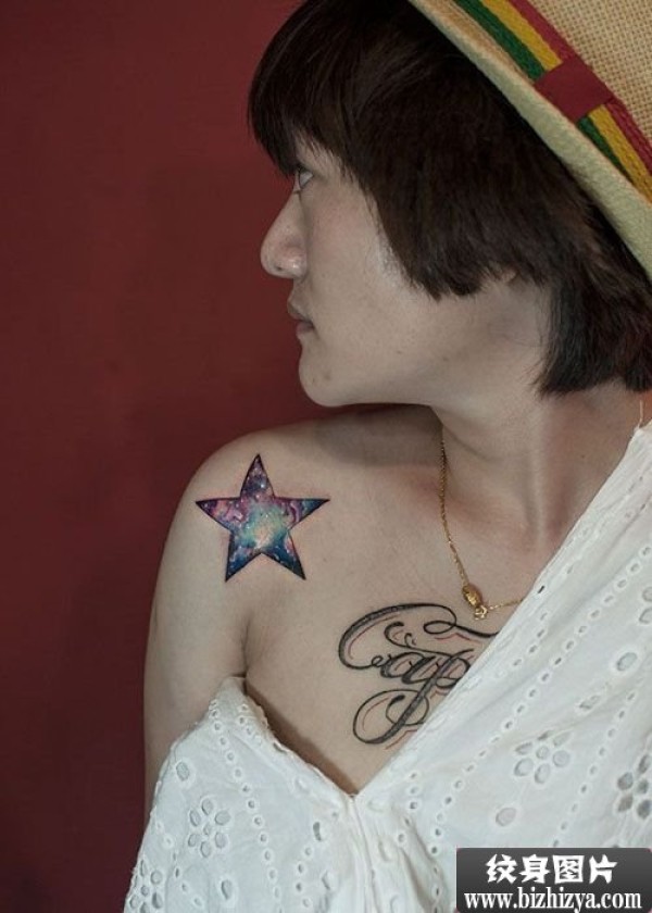 唯美星空星星肩部纹身图案图片_肩部纹身图案大全_纹身图吧