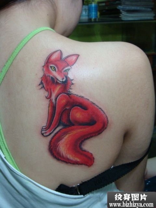 香肩红色狐狸纹身图案图片_肩部纹身图案大全_纹身图吧