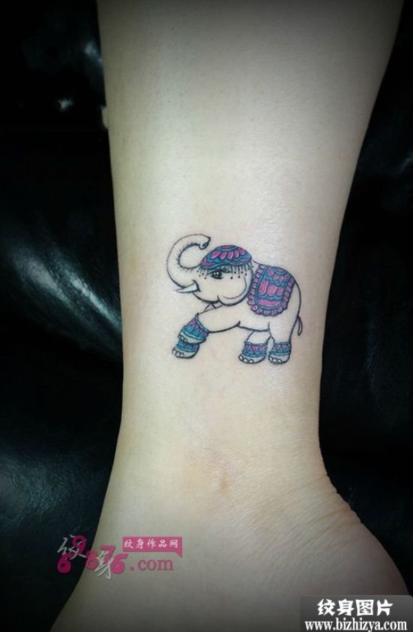 可爱小彩象脚踝纹身图案图片_脚部纹身图案大全_纹身图吧
