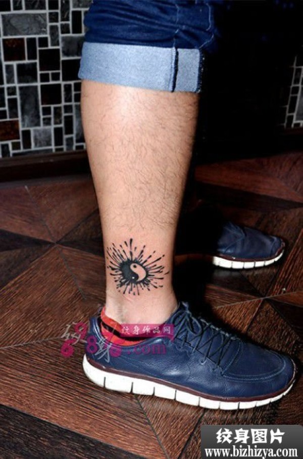 创意喷墨八卦图脚踝纹身图案图片_脚部纹身图案大全_纹身图吧