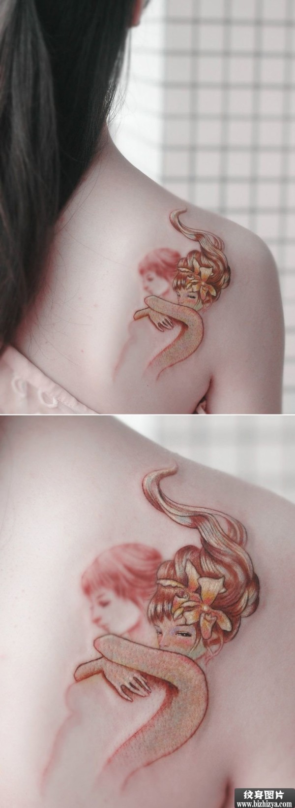 唯美肩部双生花姑娘纹身图案图片_肩部纹身图案大全_纹身图吧
