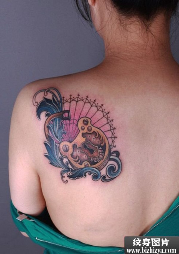 海浪与锁唯美肩部纹身图案图片_肩部纹身图案大全_纹身图吧