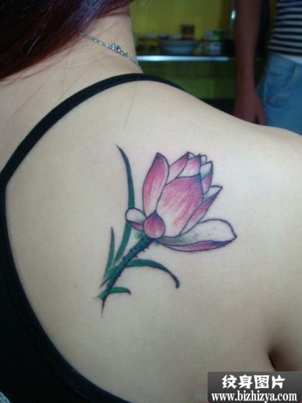 含苞欲放小荷花肩部纹身图案图片_肩部纹身图案大全_纹身图吧