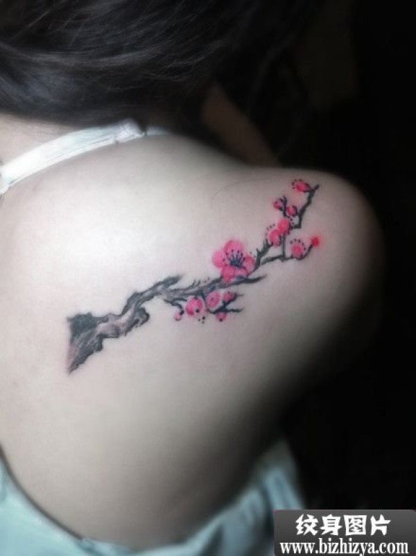 中国娇艳梅花肩部纹身图案图片_肩部纹身图案大全_纹身图吧