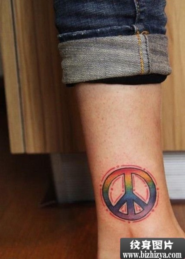 脚踝彩虹色反战LOGO纹身图案图片_脚部纹身图案大全_纹身图吧
