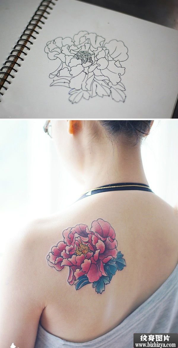 后肩牡丹花彩绘纹身图案图片_肩部纹身图案大全_纹身图吧