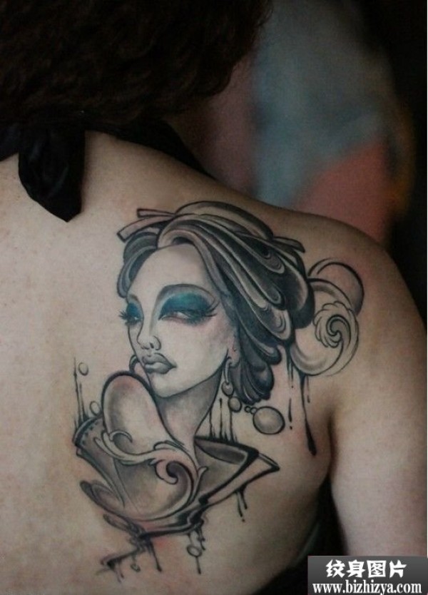 水墨风美女头像肩部纹身图案图片_肩部纹身图案大全_纹身图吧