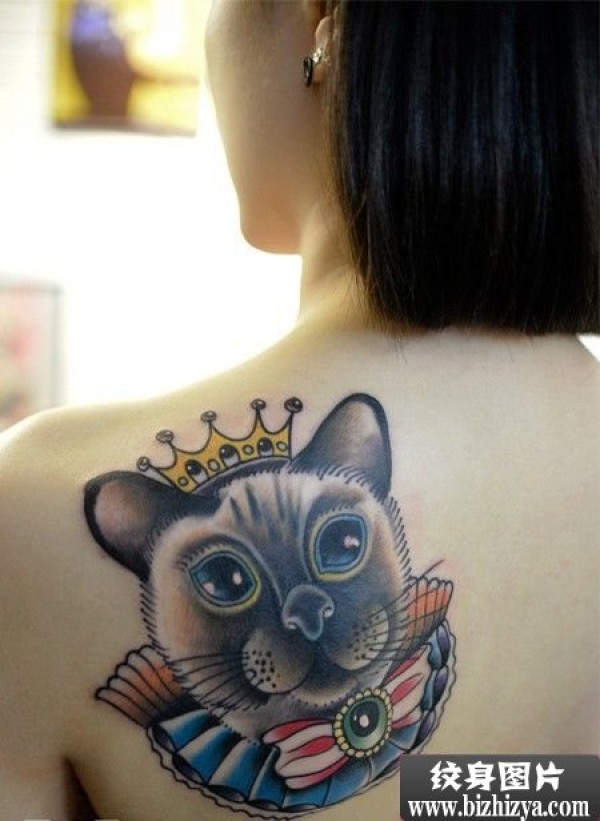 性感肩部国王猫咪纹身图案图片_肩部纹身图案大全_纹身图吧