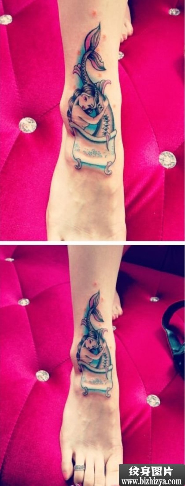 脚背彩色美人鱼洗澡纹身图案图片_脚部纹身图案大全_纹身图吧