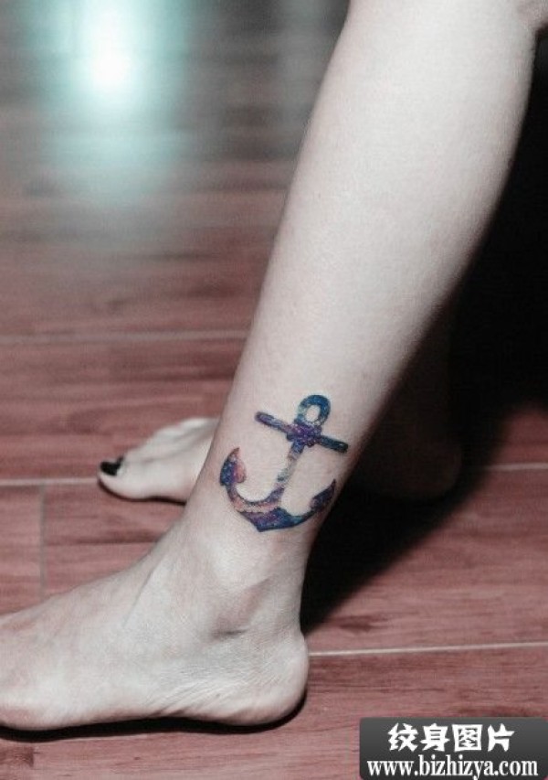 脚踝彩色锚纹身图案图片_脚部纹身图案大全_纹身图吧