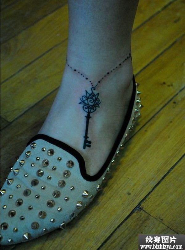 钥匙脚链脚踝纹身图片图案图片_脚部纹身图案大全_纹身图吧