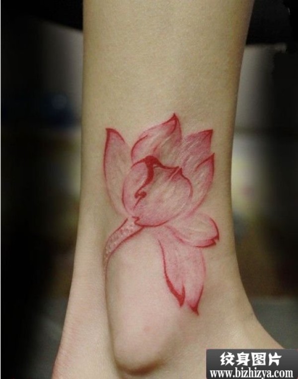 脚踝盛开荷花时尚纹身图案图片_脚部纹身图案大全_纹身图吧