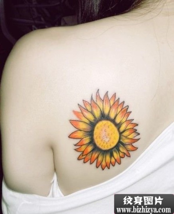 肩胛骨美丽太阳花时尚纹身图案图片_肩部纹身图案大全_纹身图吧