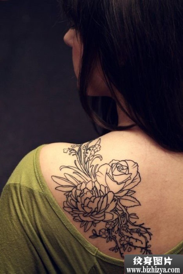 后肩唯美鲜花纹身图案图片_肩部纹身图案大全_纹身图吧