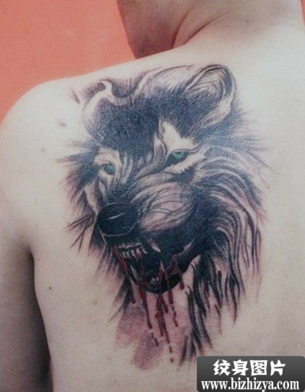 肩背霸气滴血狼头纹身图案图案图片_肩部纹身图案大全_纹身图吧