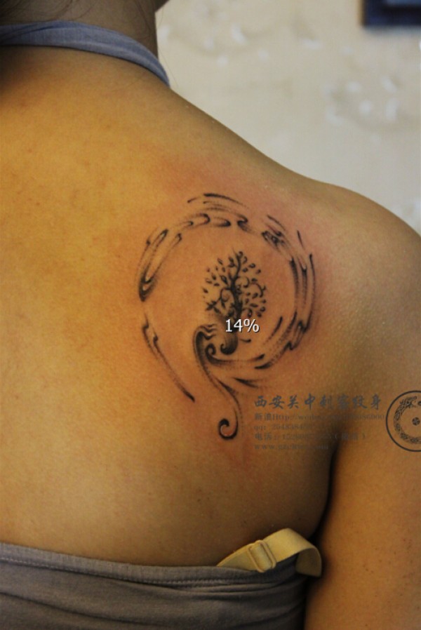 后肩小树浪花纹身 西安关中刺客纹身 (1)西安关_肩部纹身图案大全_纹身图吧