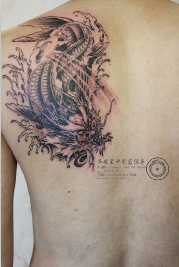 后肩鳌鱼纹身 西安关中刺客纹身西安关中刺客_肩部纹身图案大全_纹身图吧