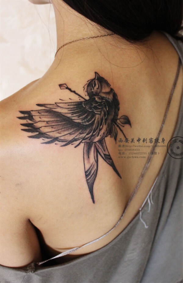 后肩小鸟遮盖纹身 西安关中刺客纹身 (3)西安关_肩部纹身图案大全_纹身图吧