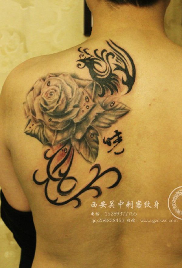 关中刺客 后肩花纹身西安关中刺客纹身_肩部纹身图案大全_纹身图吧
