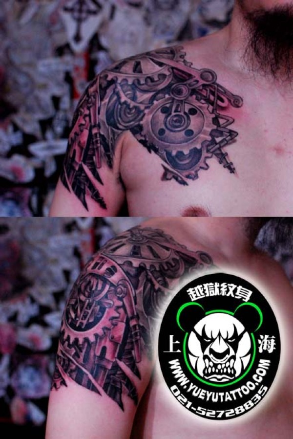 肩膀机械纹身图案上海越狱纹身店作品_肩部纹身图案大全_纹身图吧