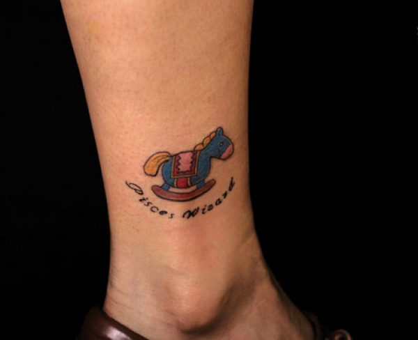 武汉最好的纹身店推荐一款脚踝彩色小马纹身图_脚部纹身图案大全_纹身图吧