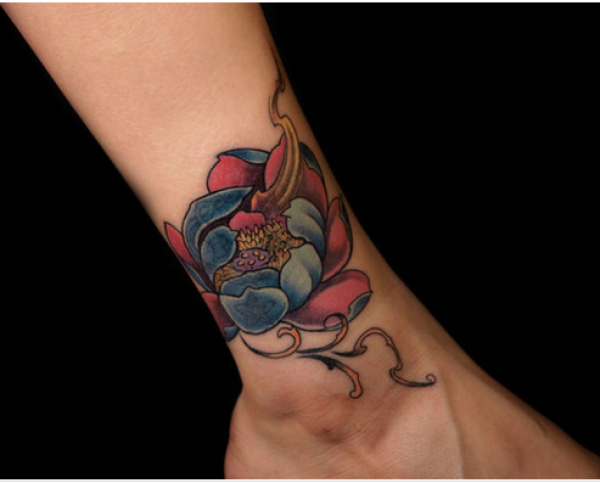 脚踝彩色莲花纹身图案由武汉最好的纹身店推荐_脚部纹身图案大全_纹身图吧