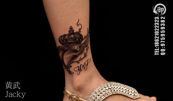 美女脚踝一款潮流时尚的皇冠爱心纹身图案_脚部纹身图案大全_纹身图吧
