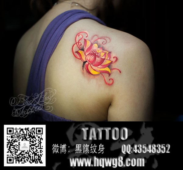 美女肩胛骨一款时尚唯美的莲花纹身图案_肩部纹身图案大全_纹身图吧