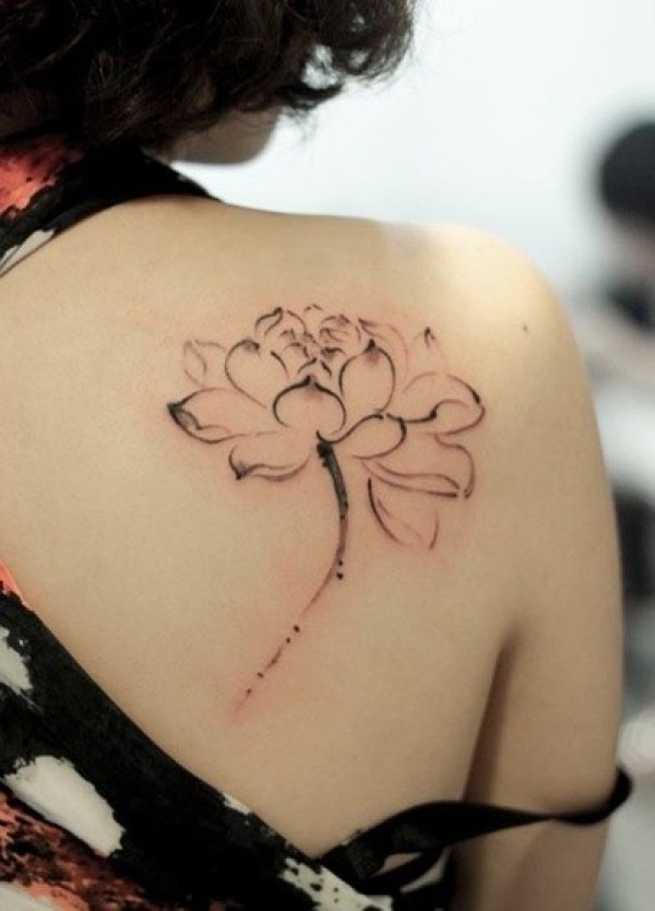 美女肩胛骨一款淡雅个性的水墨莲花纹身图案_肩部纹身图案大全_纹身图吧