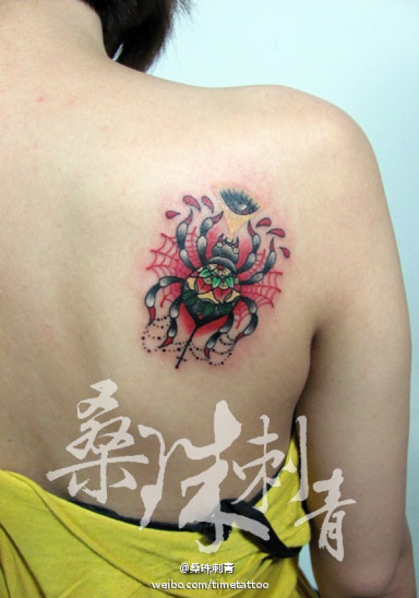 肩背时尚经典的蜘蛛纹身图案_肩部纹身图案大全_纹身图吧