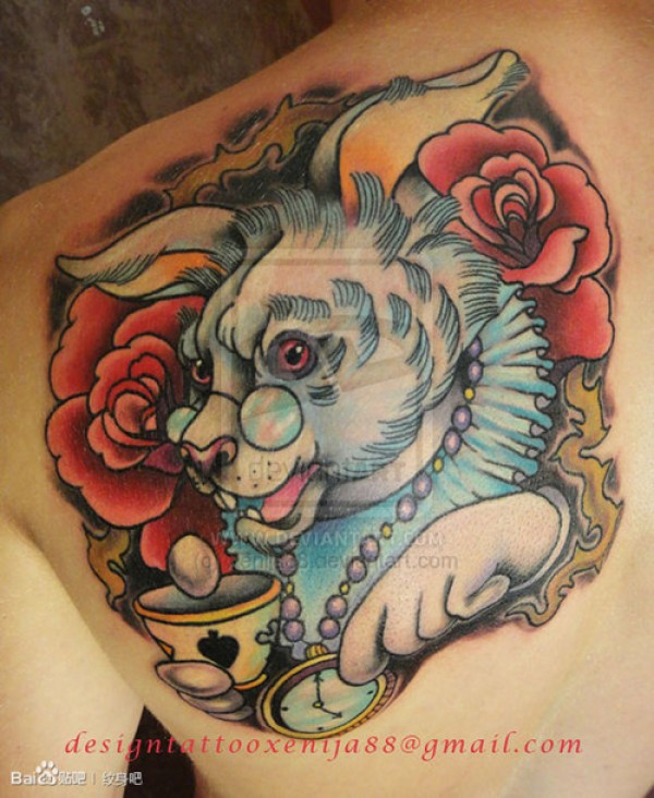 肩背潮流可爱的兔子纹身图案_肩部纹身图案大全_纹身图吧
