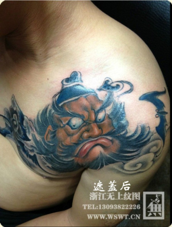 肩膀处潮流经典的钟馗纹身图案_肩部纹身图案大全_纹身图吧
