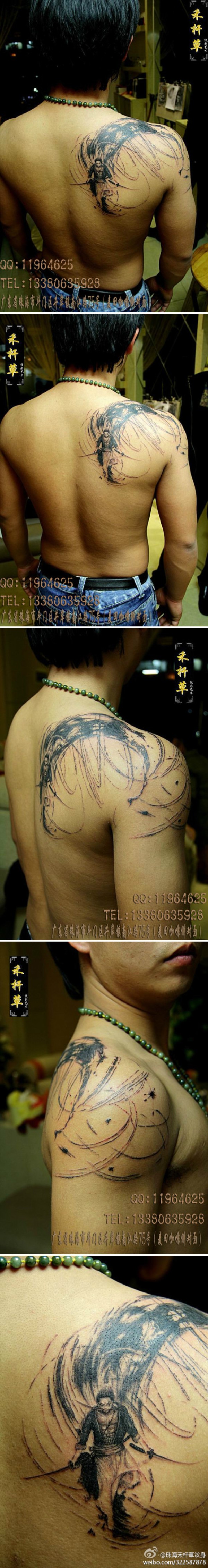 男生肩背很酷的海贼王索罗纹身图案_肩部纹身图案大全_纹身图吧