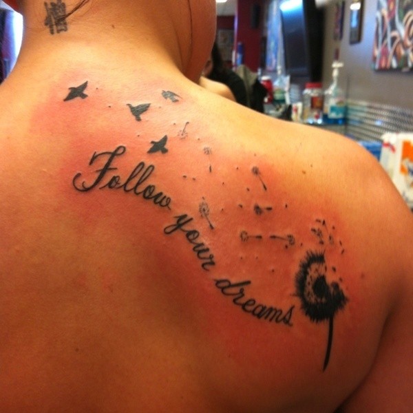 推荐一款时尚唯美的肩胛骨蒲公英纹身图案_肩部纹身图案大全_纹身图吧