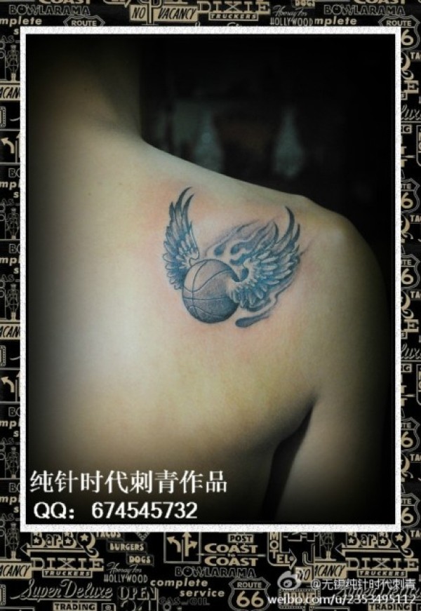 男生肩背一款小篮球纹身图案_肩部纹身图案大全_纹身图吧