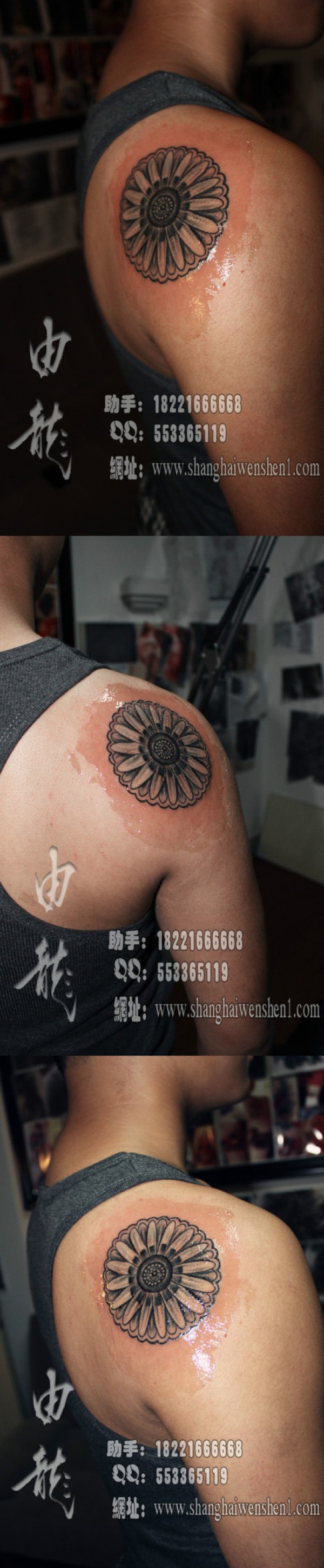 肩背潮流时尚的一款邹菊纹身图案_肩部纹身图案大全_纹身图吧